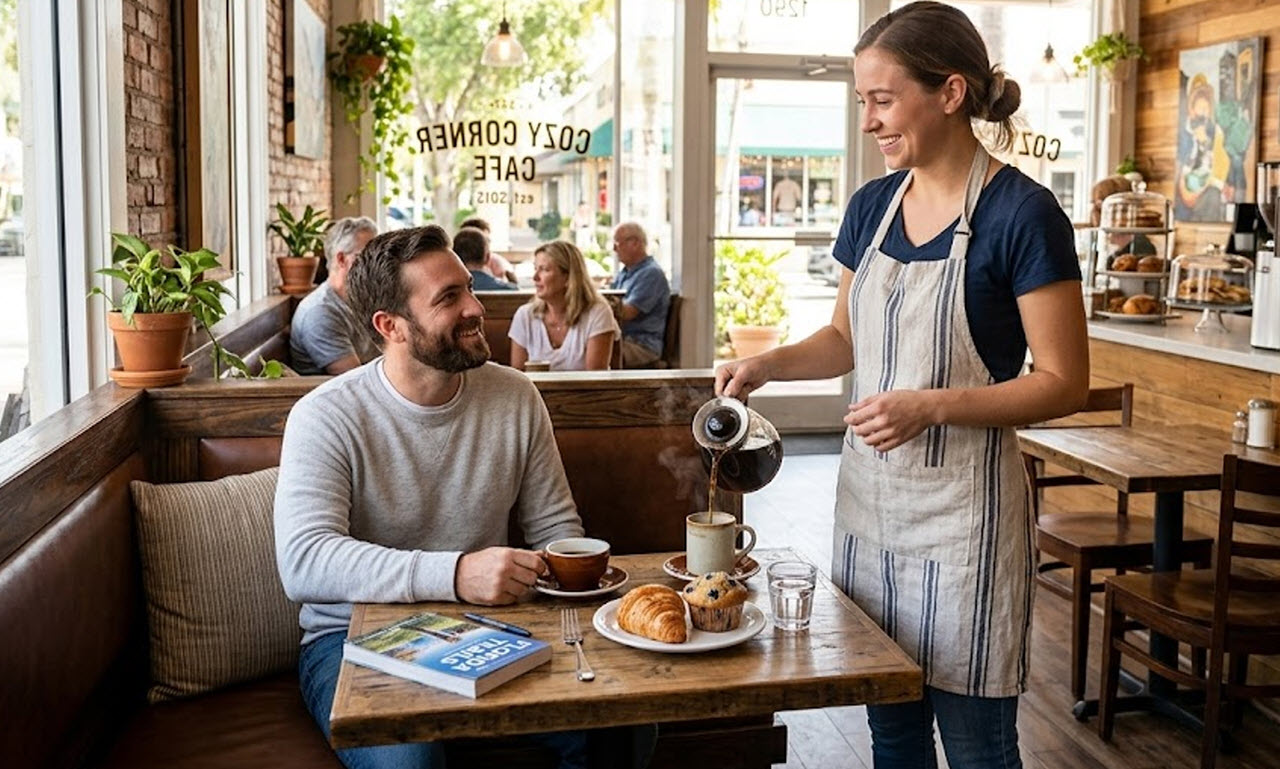 I watched the waitress laugh with an old man as she refilled his cup, tease a teenager about the syrup, pick up a little girl’s fallen napkin, and somehow remember every order without writing any of it down.