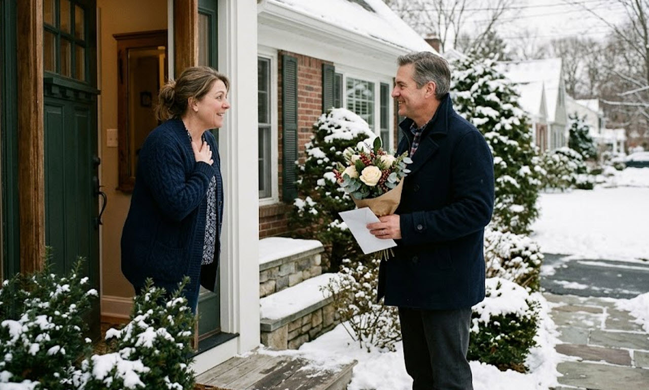 The man standing on my porch had my late brother’s eyes, the same sharp jaw, and the crooked smile that always pulled higher on the left side. He was holding a small bouquet and a sealed envelope.