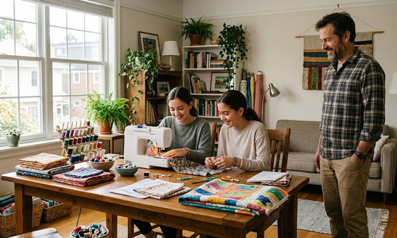 “Dad, can you help me with this hemline?” Emma called from the sewing table one evening.