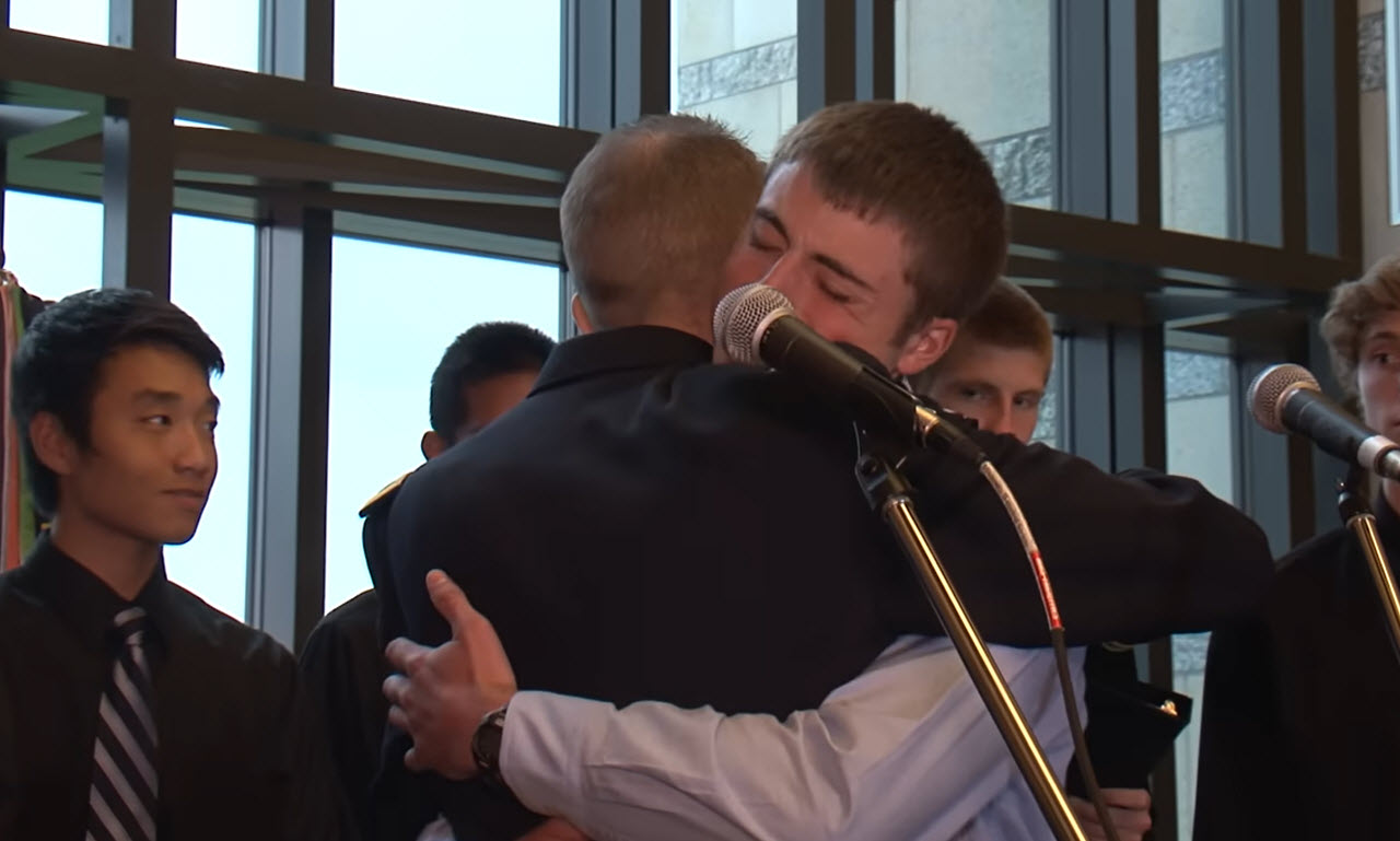 His son stood beside him the entire time, steady and focused, supporting his father’s voice as the music carried on. The way they watched each other mattered as much as the song itself, and the bond between them was clear without needing explanation.