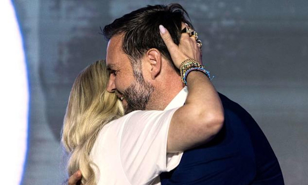 Vance joined her on stage and hugged her before speaking. During the embrace, Erika placed her hand on the back of his head, which quickly drew attention online. Some viewers called the moment intimate and said it crossed a line.