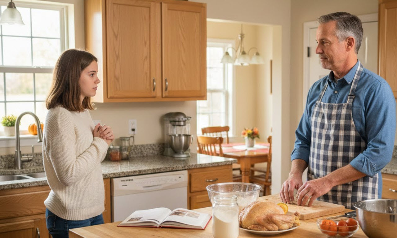 It was Thanksgiving morning. It had been just the two of us for years, and the air was thick with the comforting smell of roasting turkey and cinnamon when I heard Grace enter the kitchen.
