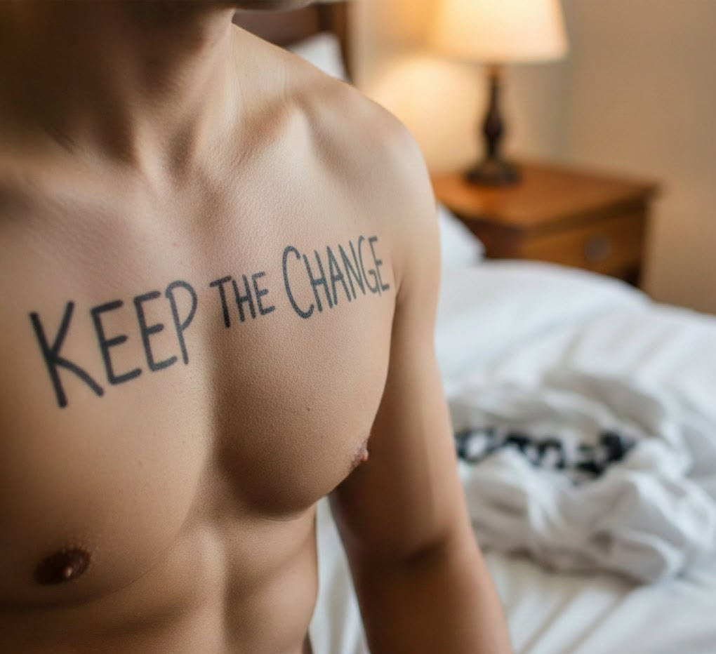 Helping him to bed was a challenge. As I peeled off his shirt, I noticed something strange. Above my playful note, someone had written a reply. The message on my husband’s chest now read, “Keep the change.”