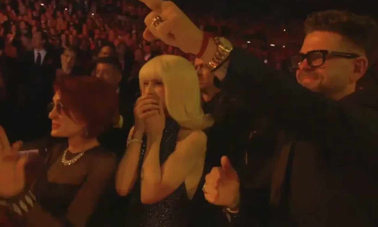 The camera then moved through the crowd and found Sharon, Jack, and Kelly Osbourne watching from their seats. All three were visibly emotional, wiping away tears as the tribute settled in, the weight of the moment clear without anything needing to be said aloud.