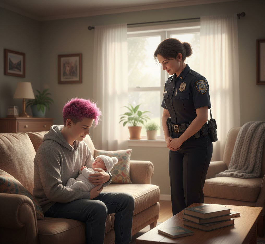 The officer’s eyes swept over him-pink hair, piercings, black clothes, no jacket in the freezing air.